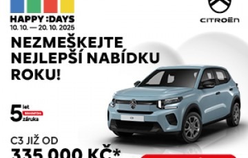 Využijte jedinečnou nabídku na skladové vozy Citroën v rámci akce Happy Days u Vašeho autorizovaného koncesionáře Auto Schwab s.r.o. do 20.10.2025